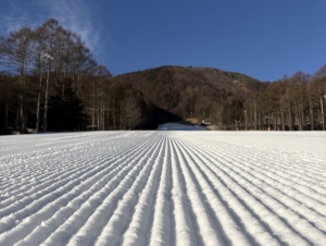 気温は低いので人工降雪によりゲレンデは新鮮な雪をご用意!また締まったバーンはとっても滑りやすくて上達しやすいです。