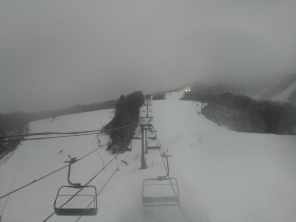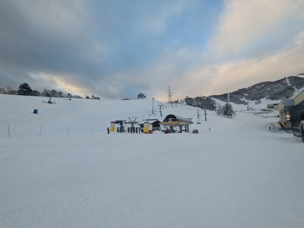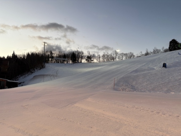 平日なので空いていました。 雪が固くガンガン滑れた。