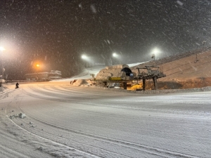 ヨルダイナ前のゲレンデ整備が大好評!夕刻のファーストピステをお楽しみください。
