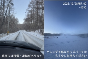 | 滑走状態 | 一部可能[△] | 天気 | 晴 | 気温 | -7℃ | 雪質 | 人工雪 | 積雪 | 25cm |